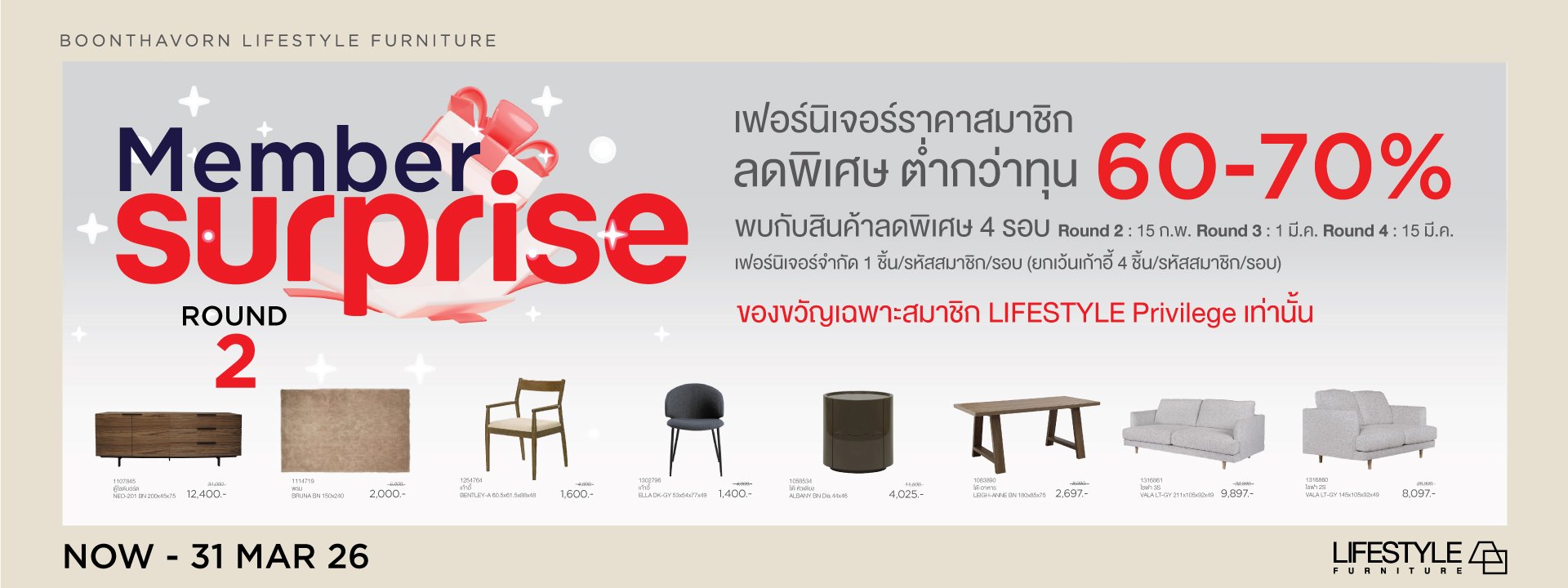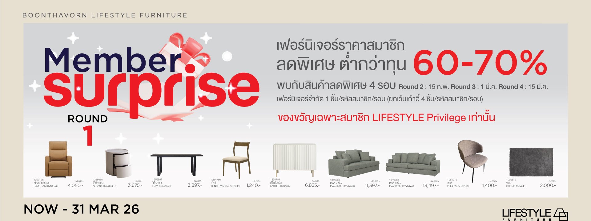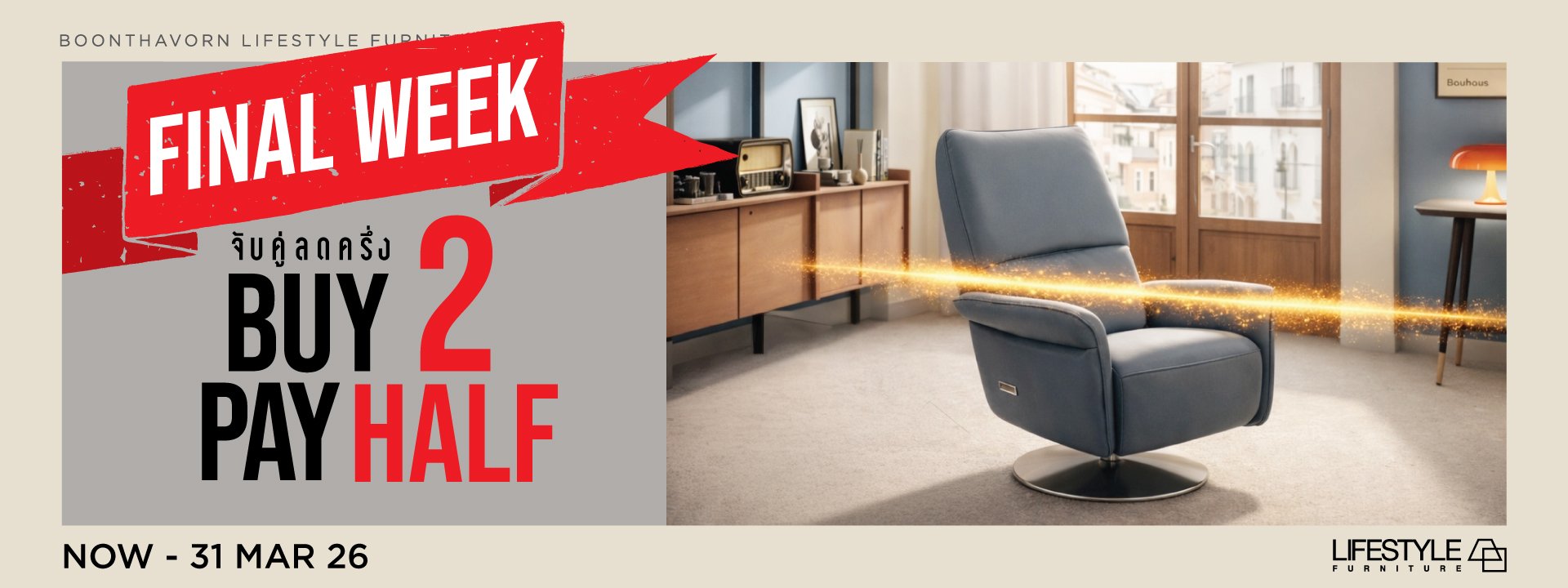 LIFESTYLE furniture คัดสรรสินค้าคุณภาพจากทั่วโลกโดยคำนึงถึงสไตล์อันเรียบง่าย หรูหรา คลาสสิค ไร้กาลเวลา เรานำเสนอเฟอร์นิเจอร์ซึ่งมีความโดดเด่นคุณภาพดีในราคาที่น่าประทับใจ เพื่อให้สินค้าทุกรายการเป็นดั่งงานศิลป์ชิ้นเอกที่มอบฟังก์ชั่นการใช้งานในการเติมเต็มความสุขให้แก่สมาชิกทุกคนในบ้านคุณ