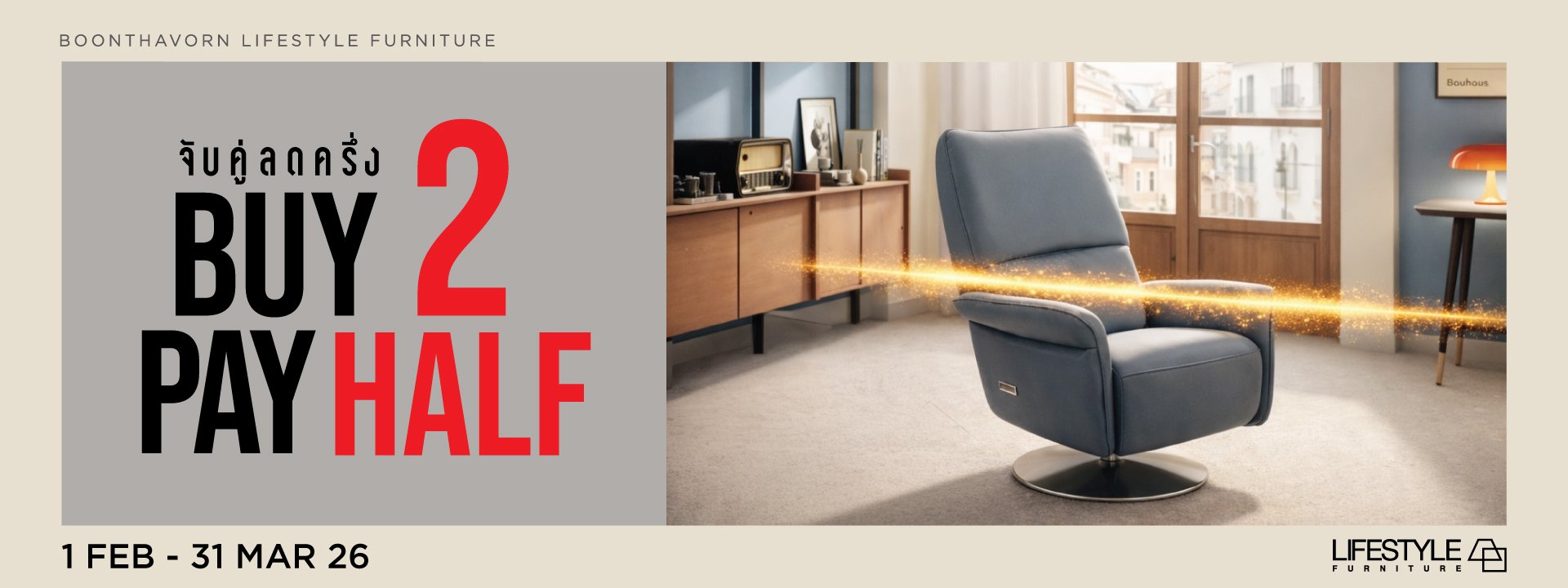 LIFESTYLE furniture คัดสรรสินค้าคุณภาพจากทั่วโลกโดยคำนึงถึงสไตล์อันเรียบง่าย หรูหรา คลาสสิค ไร้กาลเวลา เรานำเสนอเฟอร์นิเจอร์ซึ่งมีความโดดเด่นคุณภาพดีในราคาที่น่าประทับใจ เพื่อให้สินค้าทุกรายการเป็นดั่งงานศิลป์ชิ้นเอกที่มอบฟังก์ชั่นการใช้งานในการเติมเต็มความสุขให้แก่สมาชิกทุกคนในบ้านคุณ