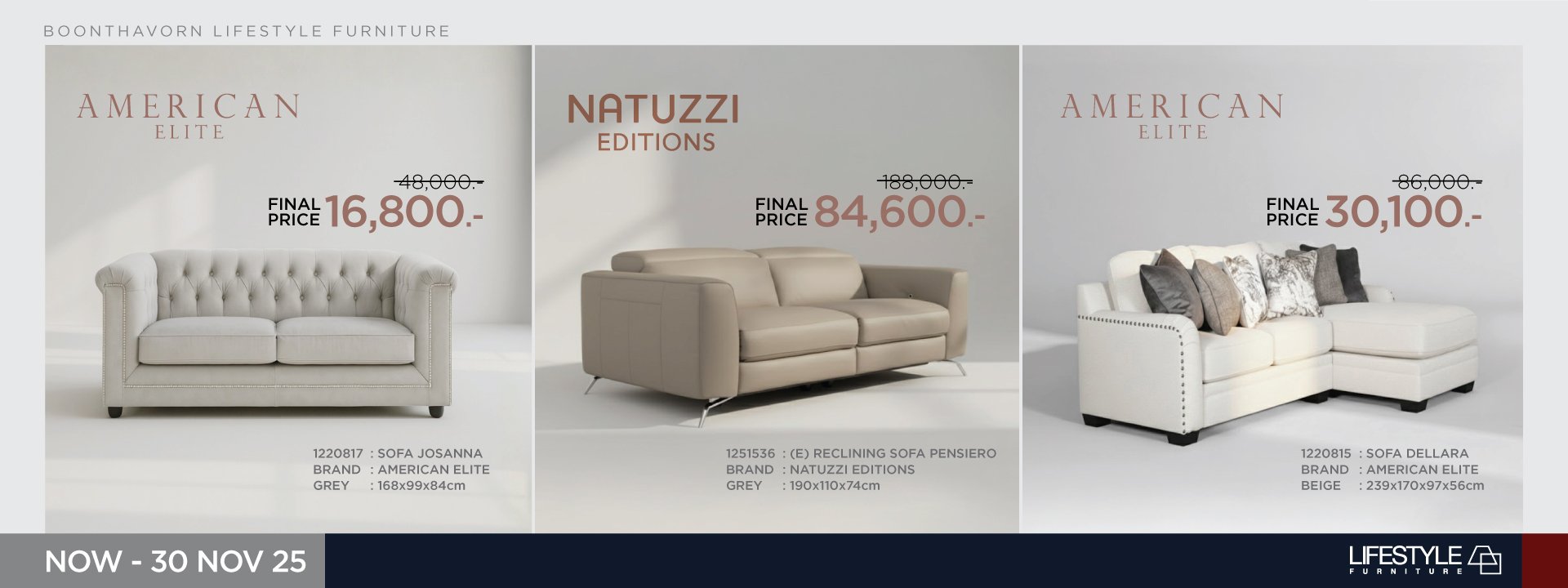 พบกับสินค้าแบรนด์ดังระดับโลกในราคาที่คุณสามารถเป็นเจ้าของได้ พร้อมให้บริการคำแนะนำเลือกสรรจากพนักงานมืออาชีพ พร้อมนำไปจัดแต่งบ้านคุณอย่างลงตัวได้แล้ววันนี้ที่ LIFESTYLE furniture ทุกแกลเลอรีใกล้บ้านคุณ