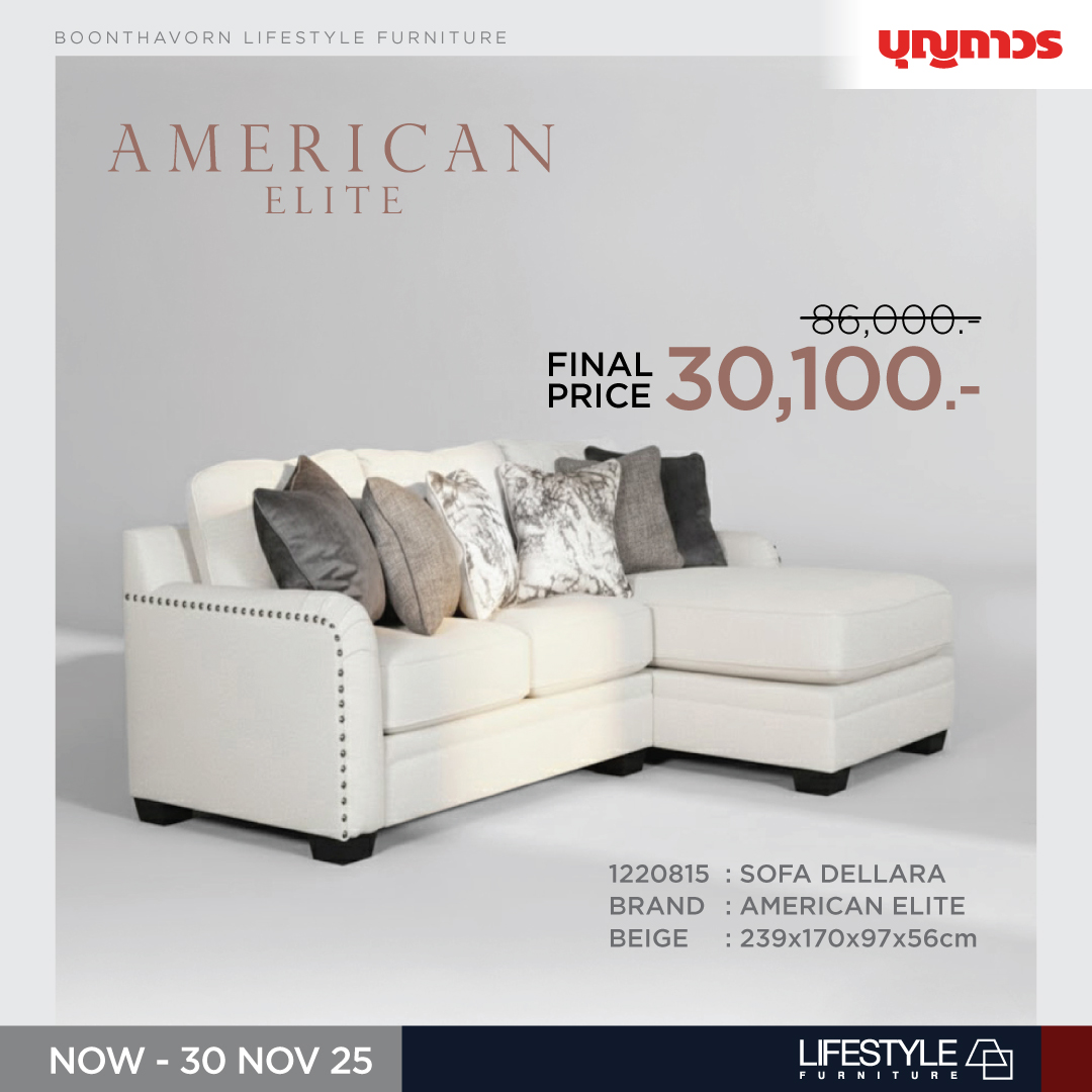 โซฟา L-Shape สไตล์อเมริกันคอนเทมโพรารี ลด 65% เหลือเพียง 30,100.- (จากราคาปกติ 86,000.-)