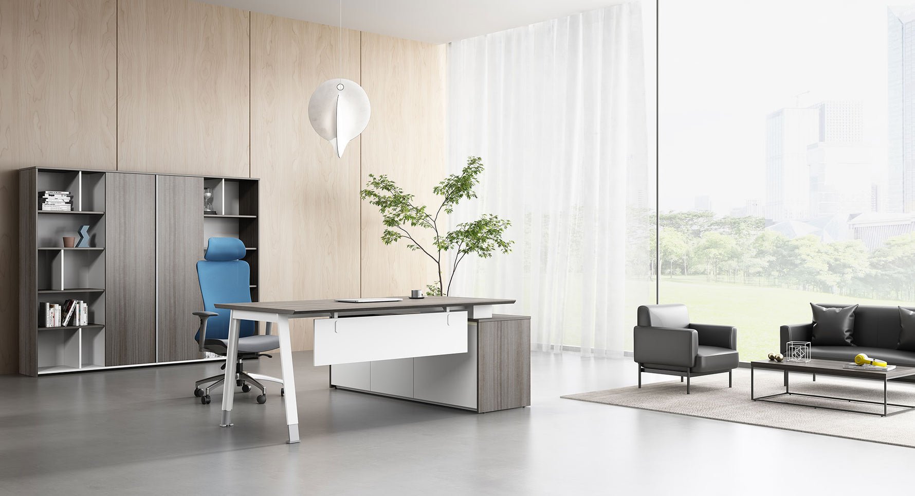 The Noqi series offers a clean and contemporary collection that blends white and khaki wooden undertones for a minimalistic yet elegant workspace. Its versatility suits various settings, from home offices to collaborative workspaces, and it offers three leg options: "O," "U," and "V" shaped steel legs.